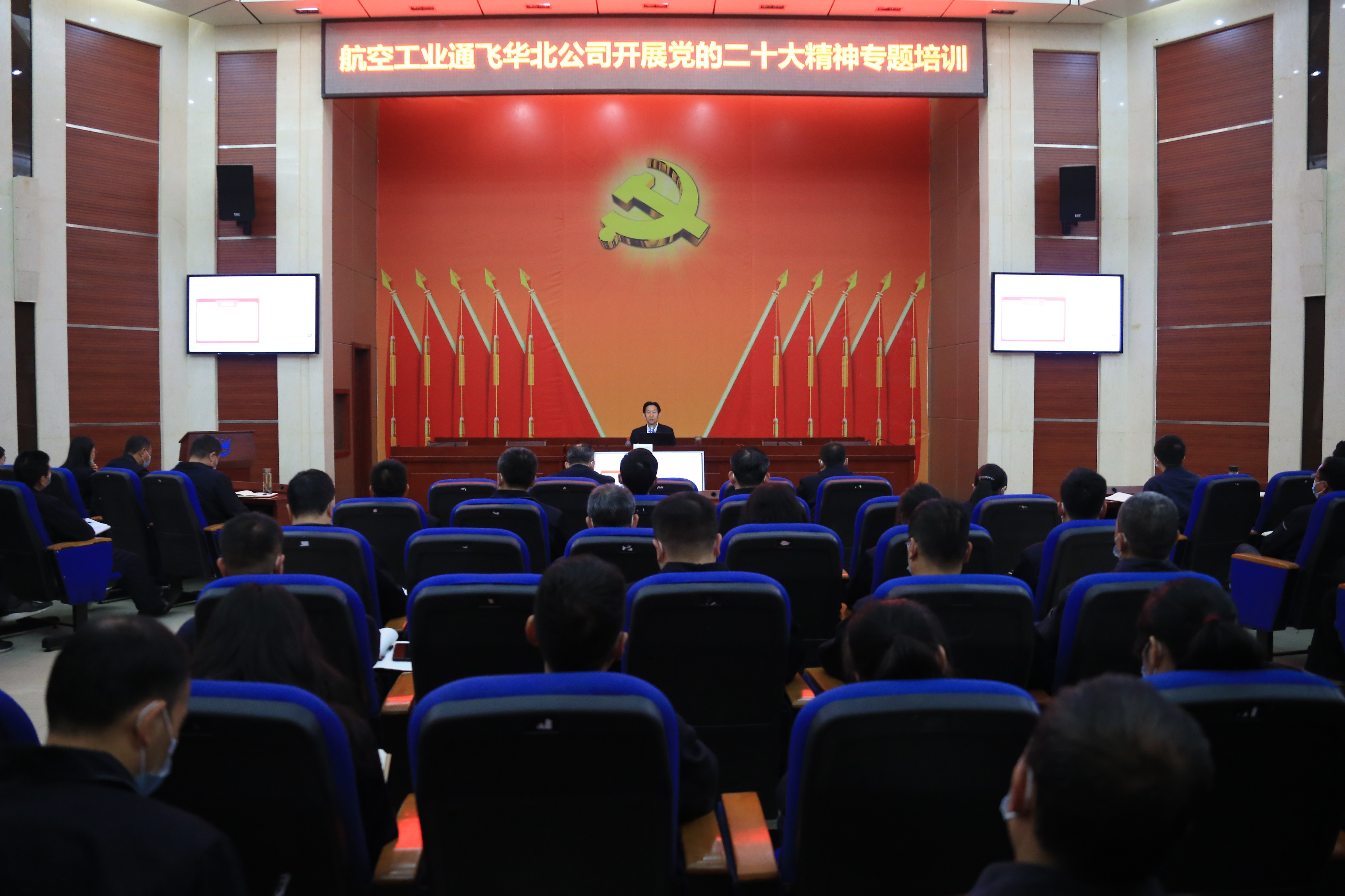 10月29日,為深入學(xué)習(xí)宣貫黨的二十大精神,精準(zhǔn)把握黨的二十大精神的深刻內(nèi)涵和精神實(shí)質(zhì),航空工業(yè)通飛華北公司組織開(kāi)展黨的二十大精神專(zhuān)題培訓(xùn),邀請(qǐng)河北省委黨校黨建部主任楊東廣教授進(jìn)行現(xiàn)場(chǎng)專(zhuān)題授課。公司領(lǐng)導(dǎo)、全體中層領(lǐng)導(dǎo)干部、黨支部委員、黨員代表共計(jì)110余人參加。
